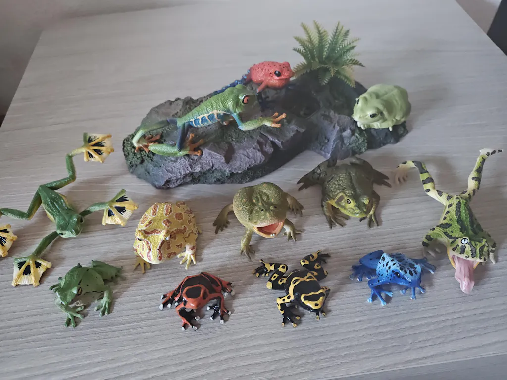 استكشف عالم البرمائيات المتنوع مع مجموعة مكونة من 12 تمثال ضفدع حيوي وواقعي، مثالية للعب والتعليم.