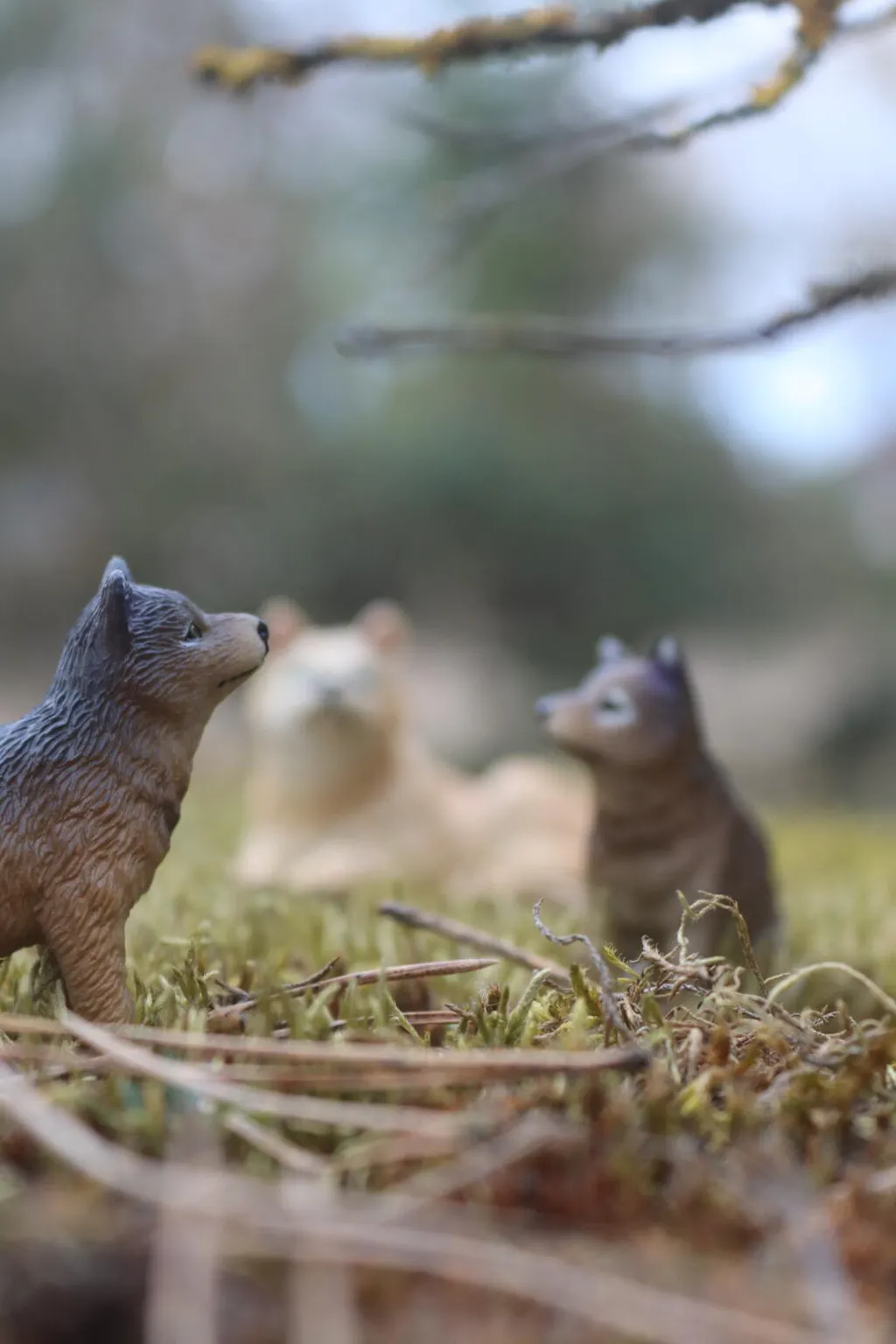 مجموعة ألعاب مجسمات الذئب المكونة من 8 قطع مع ذئب بالغ وذئب صغير