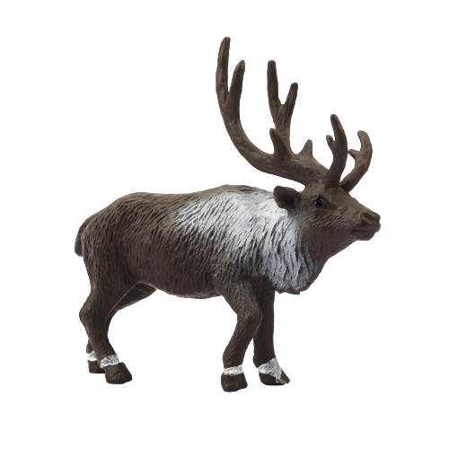 In Europa auch als Rentier bekannt, sind Karibus große, wandernde Hirsche, die in arktischen und subarktischen Regionen vorkommen und mit ihrem dicken Fell und großen Hufen an kalte Umgebungen angepasst sind.
