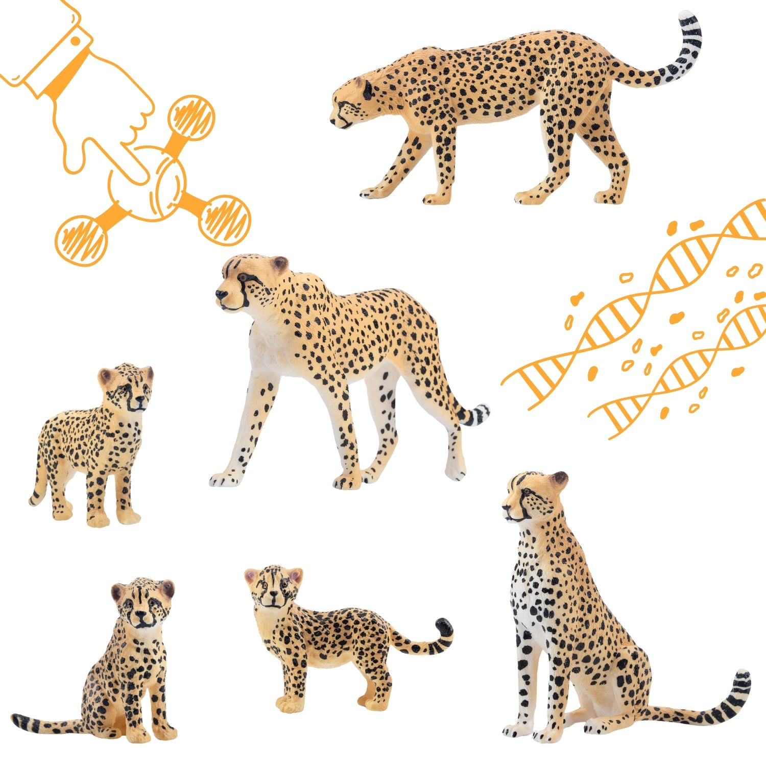 Erleben Sie die wilde Schönheit der Geparden mit diesem detaillierten 7-teiligen Gepardenfamilien-Figurenset – perfekt zum Spielen und Lernen.