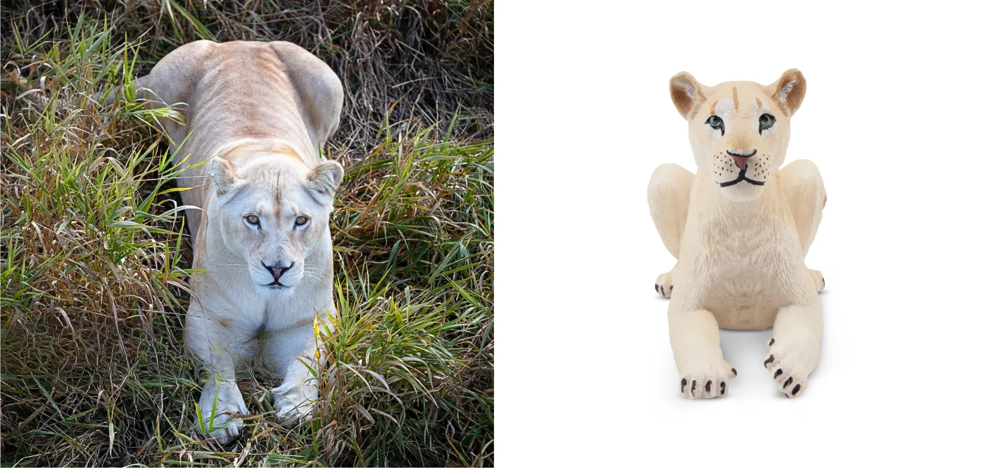 Entdecken Sie unsere Figuren der liegenden weißen Löwin: robuste Eleganz, erstklassige Materialien und fesselnde Details erwarten Sie!