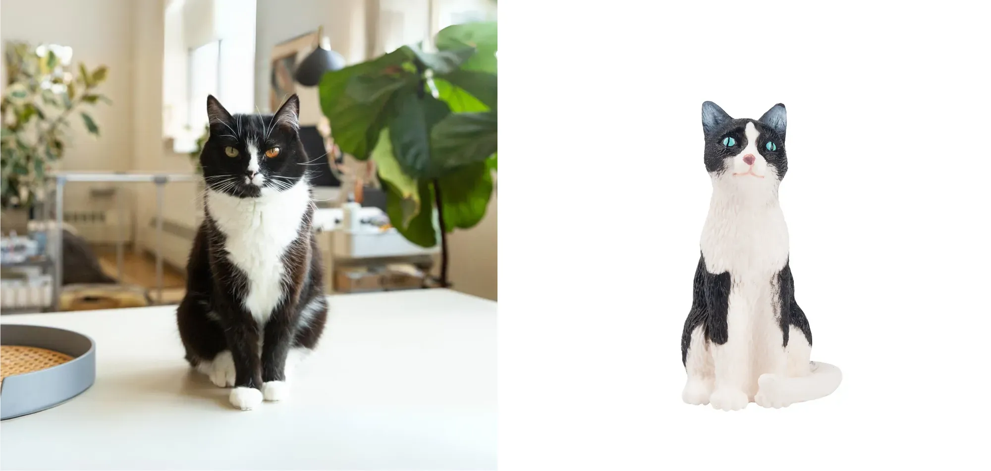 Naturgetreue Tuxedo-Katzen-Figur