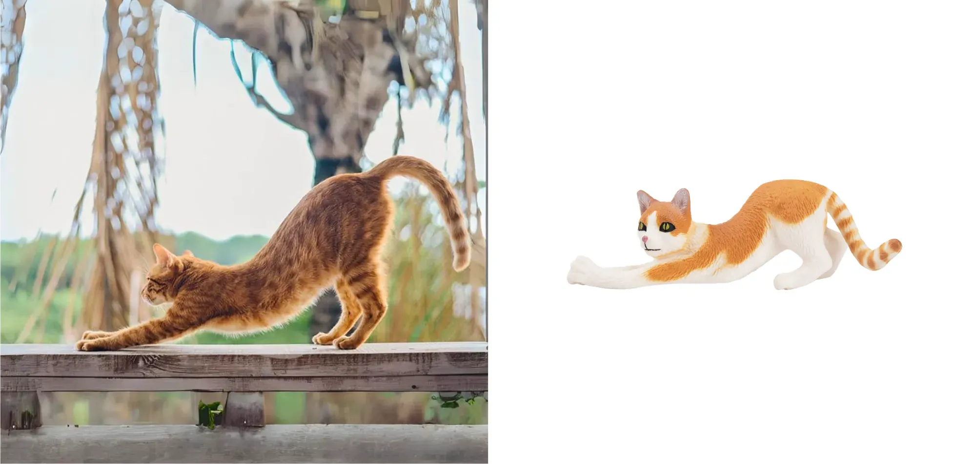 Toymany Mini Streckende Rot-weiße-Katzen-Figuren-Spielzeug