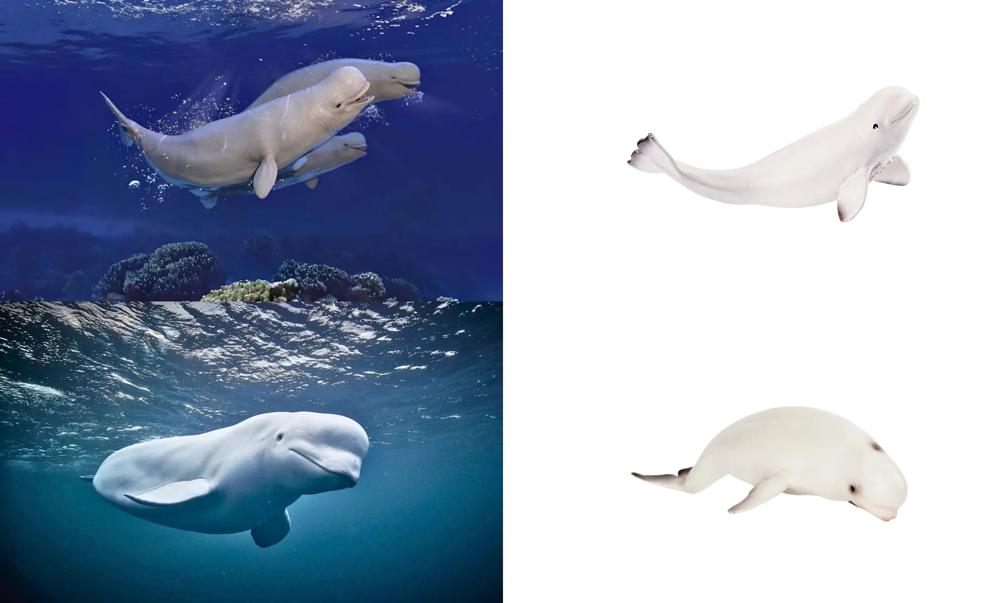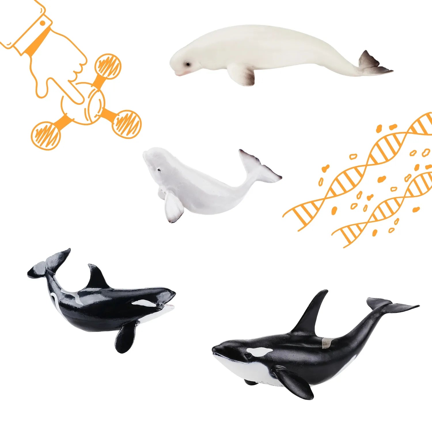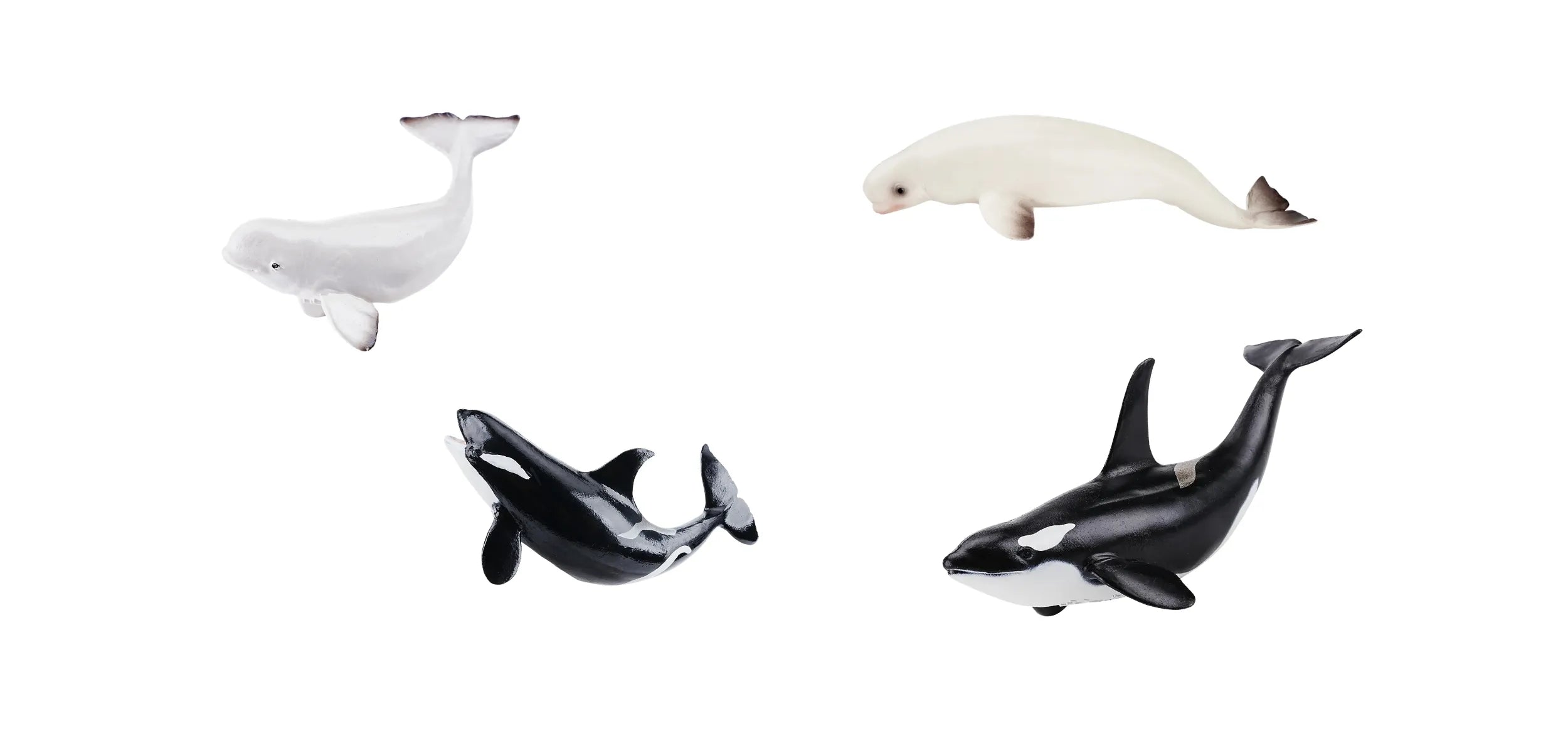 Erkunden Sie die Welt der Ozeane mit diesem lebensechten 4-teiligen Set mit Walfiguren Erwachsene und Jungtiere – ideal für fantasievolles Spielen, Ausstellen und Lernen.