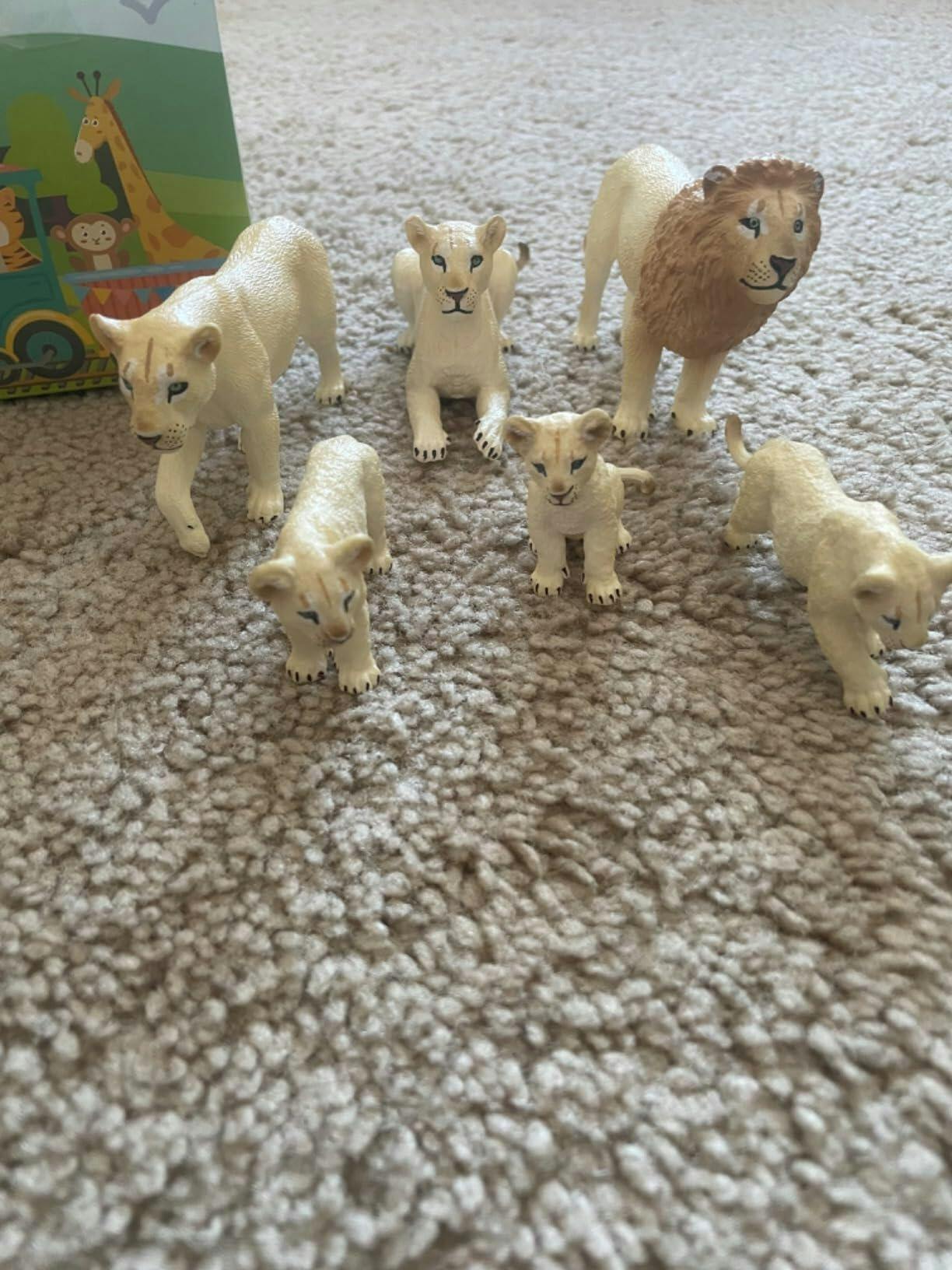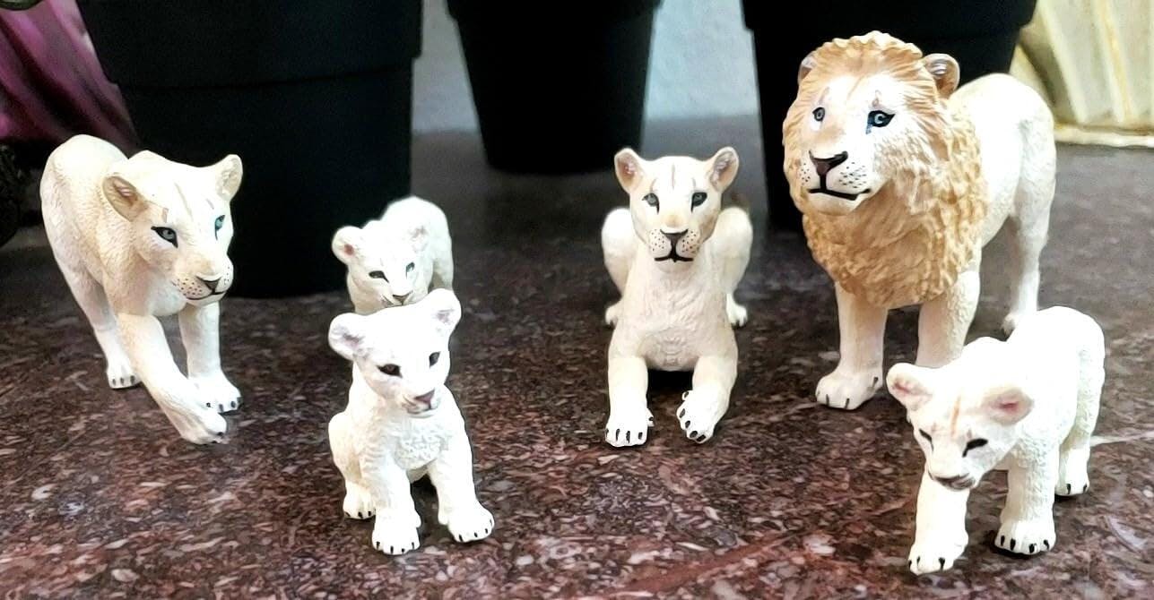 Erkunden Sie die majestätische Welt der Löwen mit diesem lebendigen Set von 6 lebensechten weißen Löwenfiguren, perfekt für pädagogisches Spielen und die Entdeckung der Tierwelt.