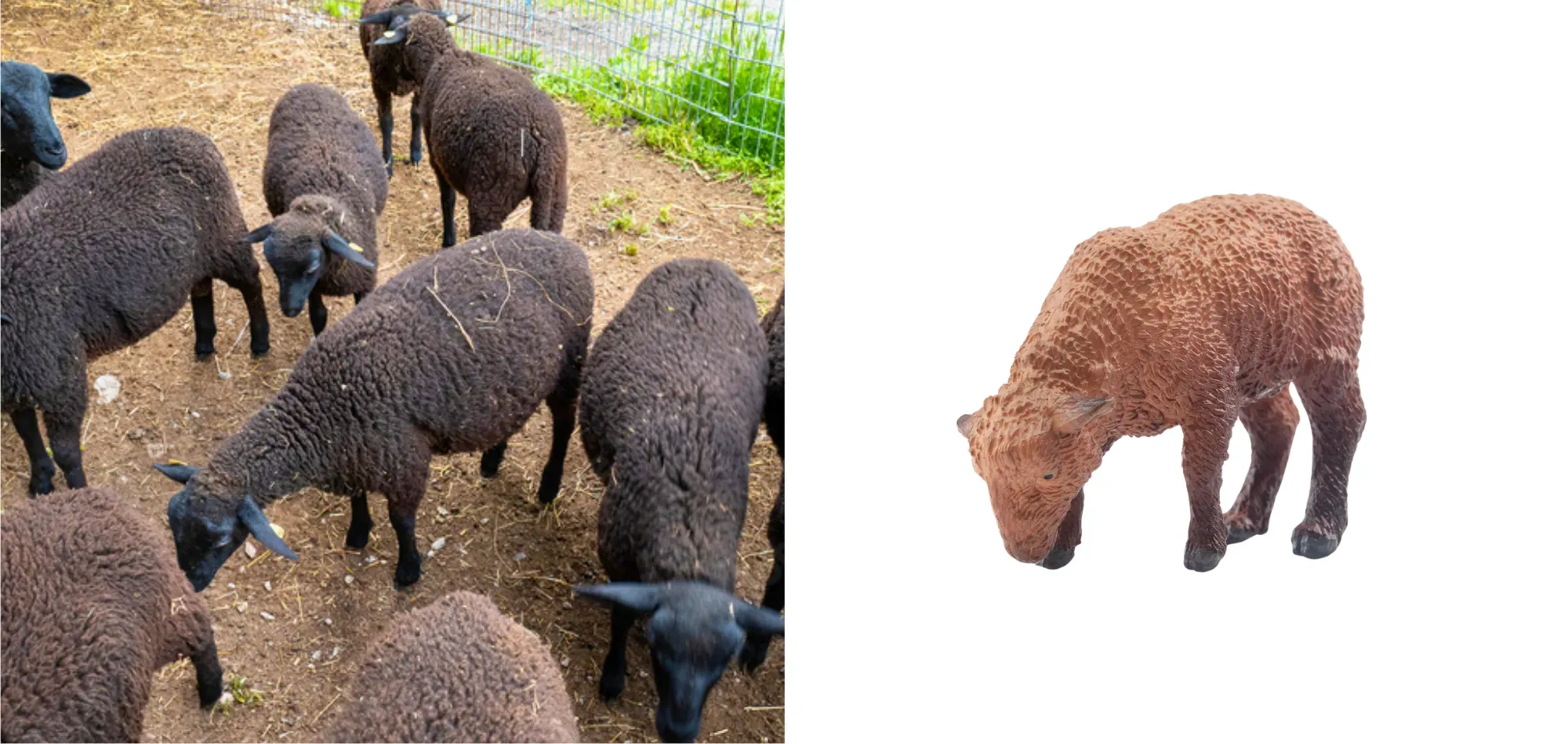 Figura de juguete Toymany de cordero marrón buscando comida