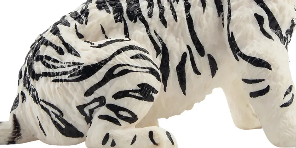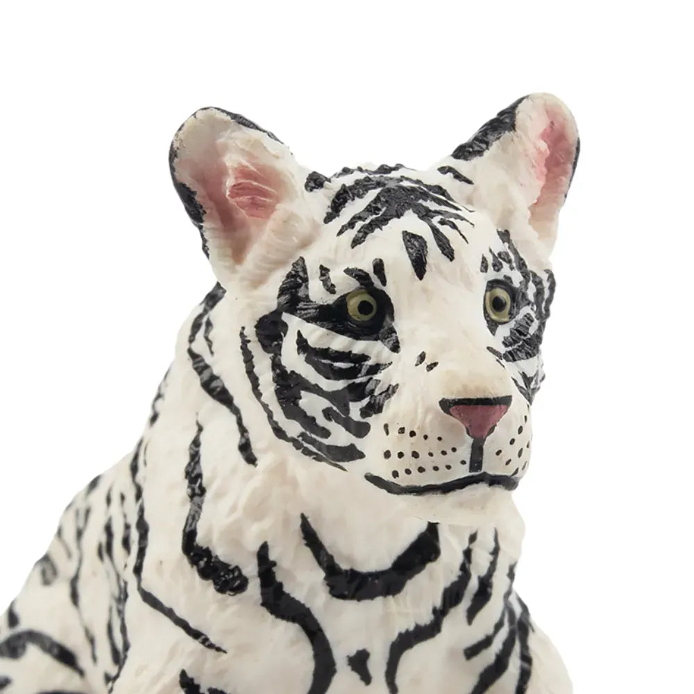 Descubre nuestra figura de cachorro de tigre blanco sentado: elegancia robusta, materiales de primera calidad y detalles cautivadores te esperan.