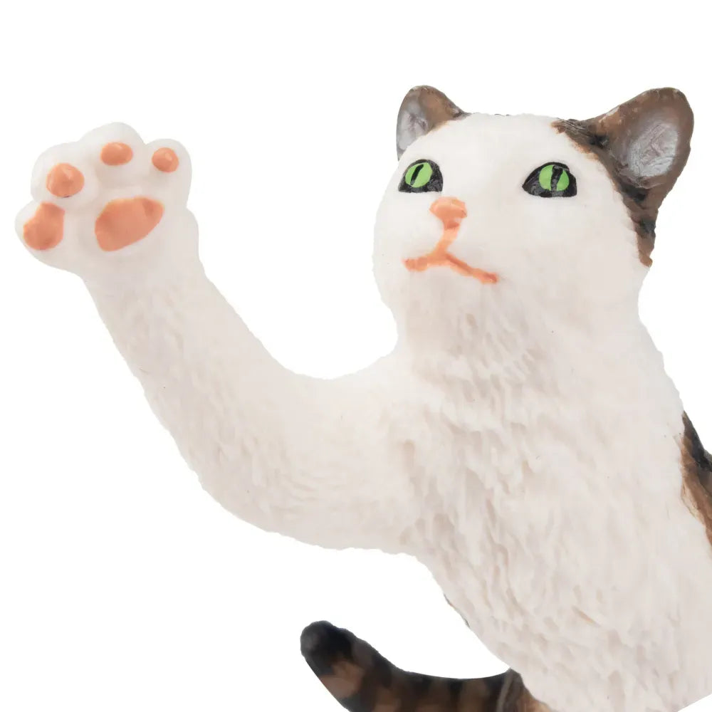 Figura de juguete Toymany de gato atigrado y blanco mini saludando