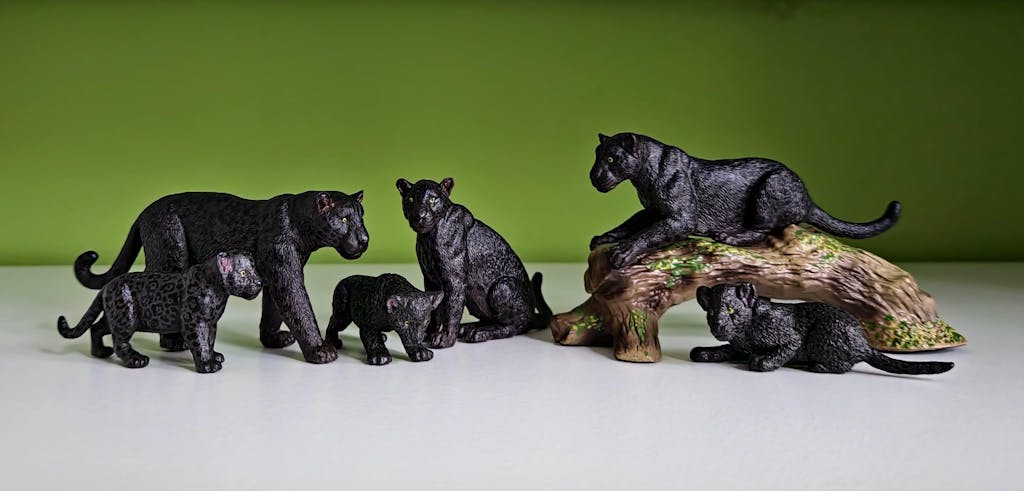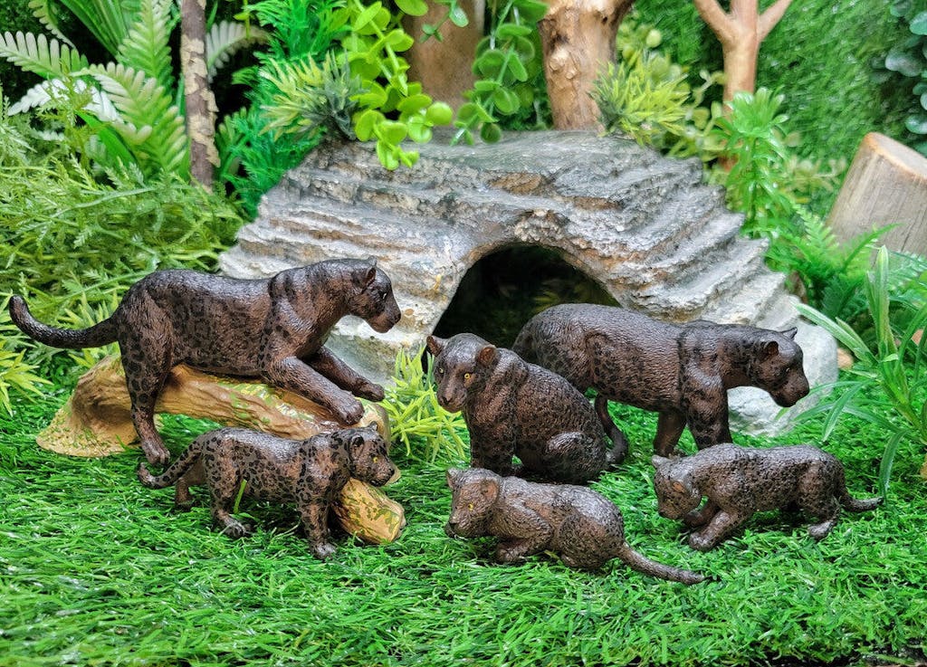 7-Piece Black Jaguar Family Figurine Playset