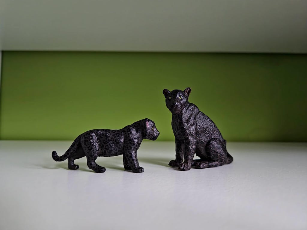 Lifelike Black Jaguars Figurines