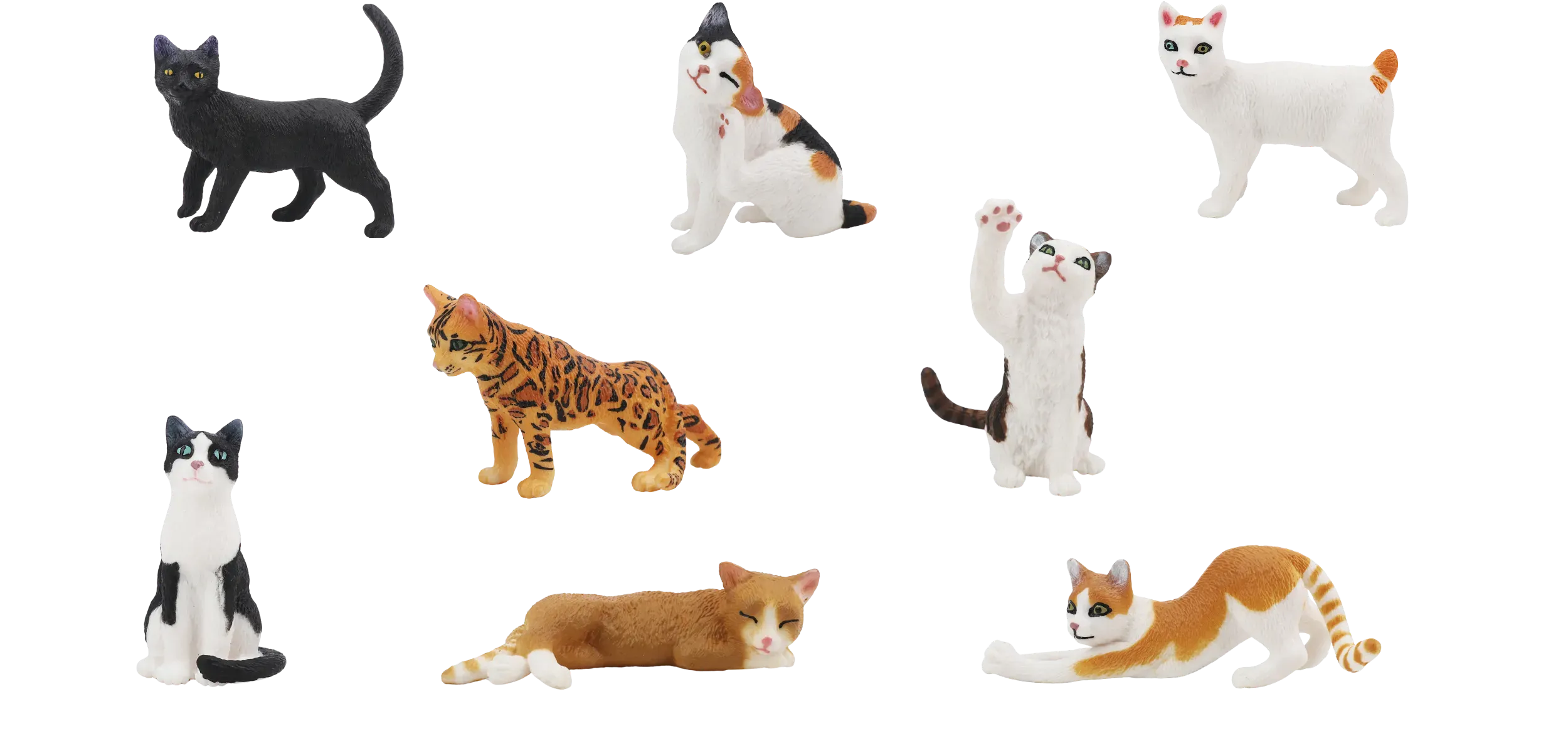 Dive into the enchanting world of feline companions with our 8-piece mini cat animal figurines playset. Ideal for play and educational exploration.