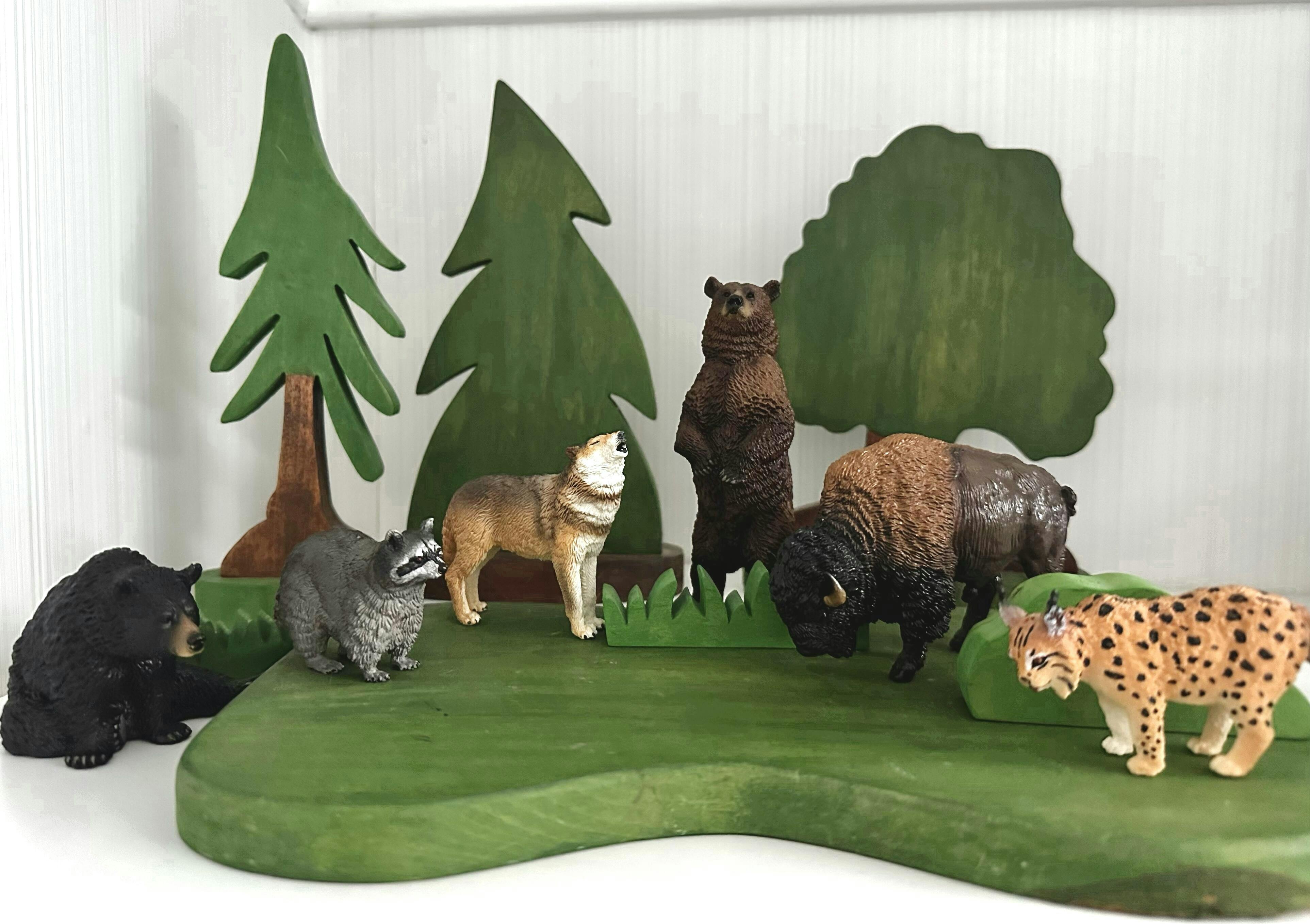 Discover the wilderness with this vibrant set of 12 lifelike North American forest animal figurines, ideal for educational play and discovery.