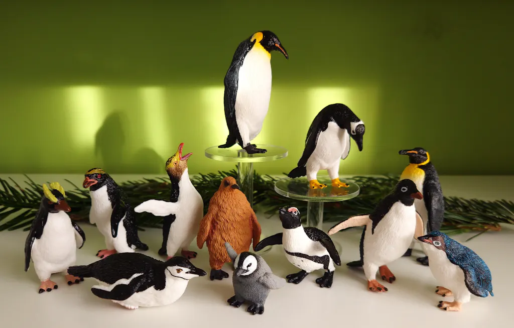 Embark on an Antarctic journey with this vibrant set of 12 lifelike penguin figurines, ideal for educational play and wildlife discovery.
