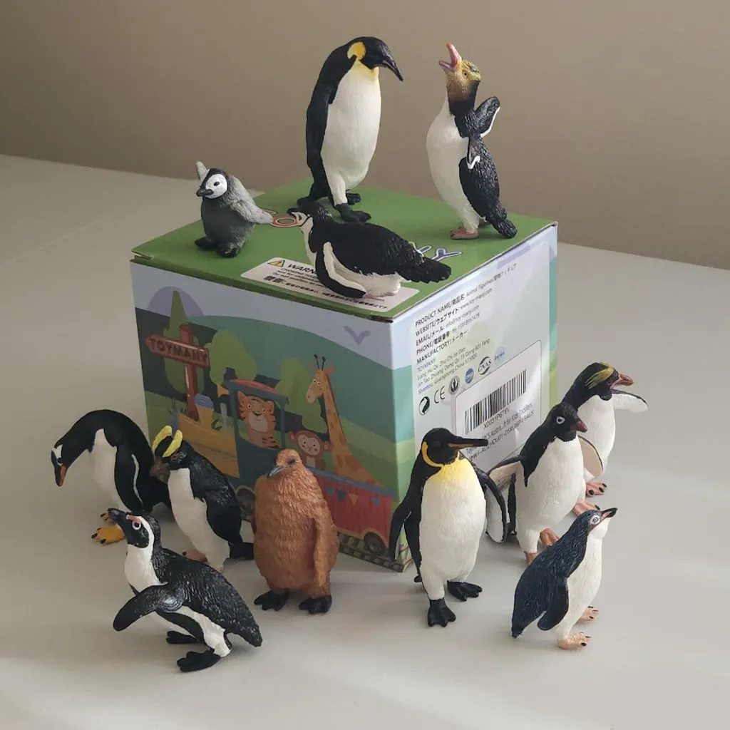 Embark on an Antarctic journey with this vibrant set of 12 lifelike penguin figurines, ideal for educational play and wildlife discovery.