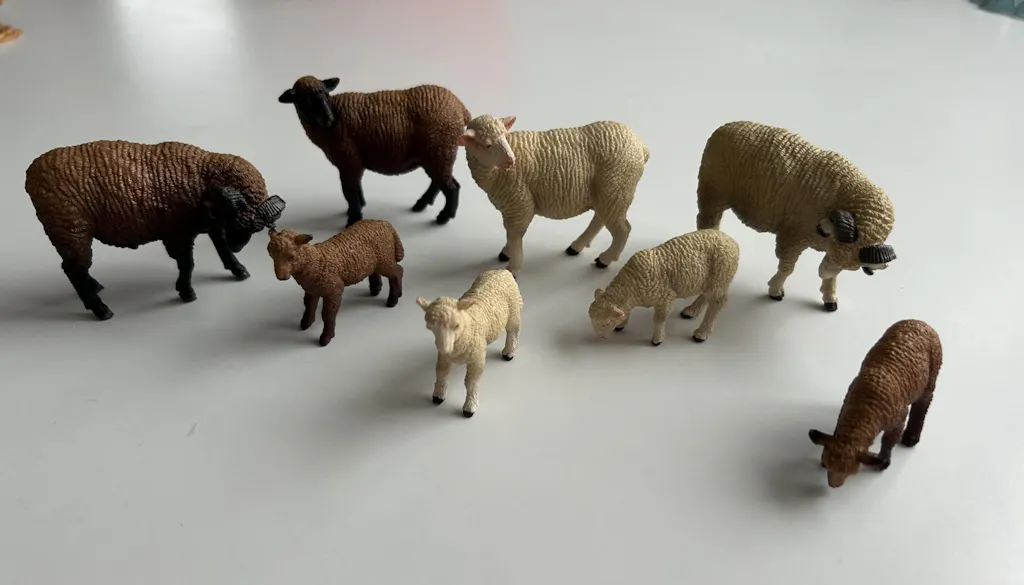 Discover the beauty of Merino sheep with our 8-piece figurine playset, a perfect blend of play and educational exploration.