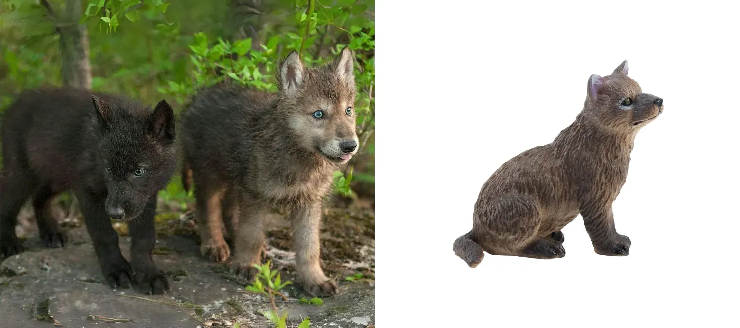 Lifelike Grey Wolf Cub Figurine