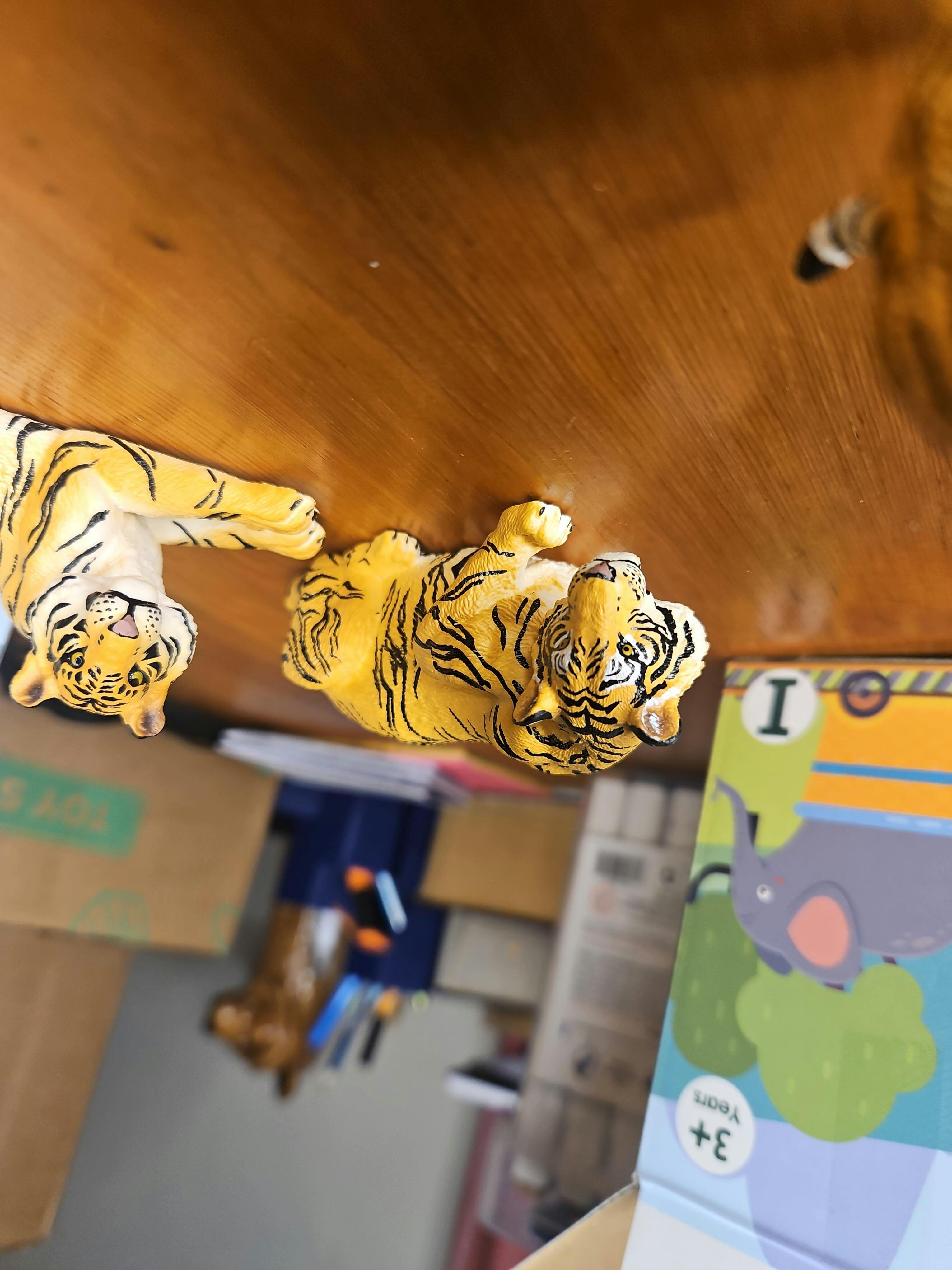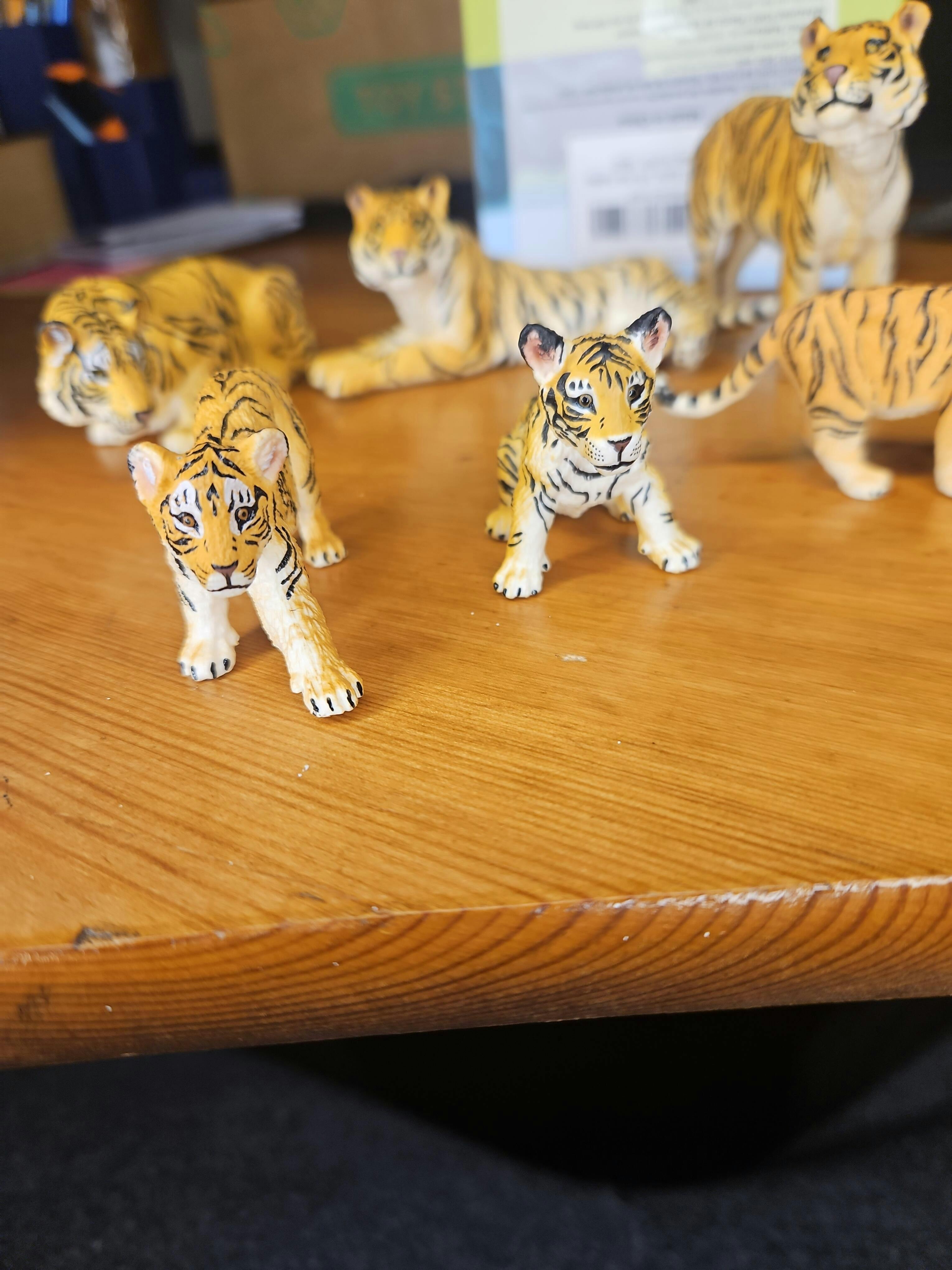 Explore the captivating world of tigers with this vibrant set of 6 lifelike tiger figurines, ideal for play and education.