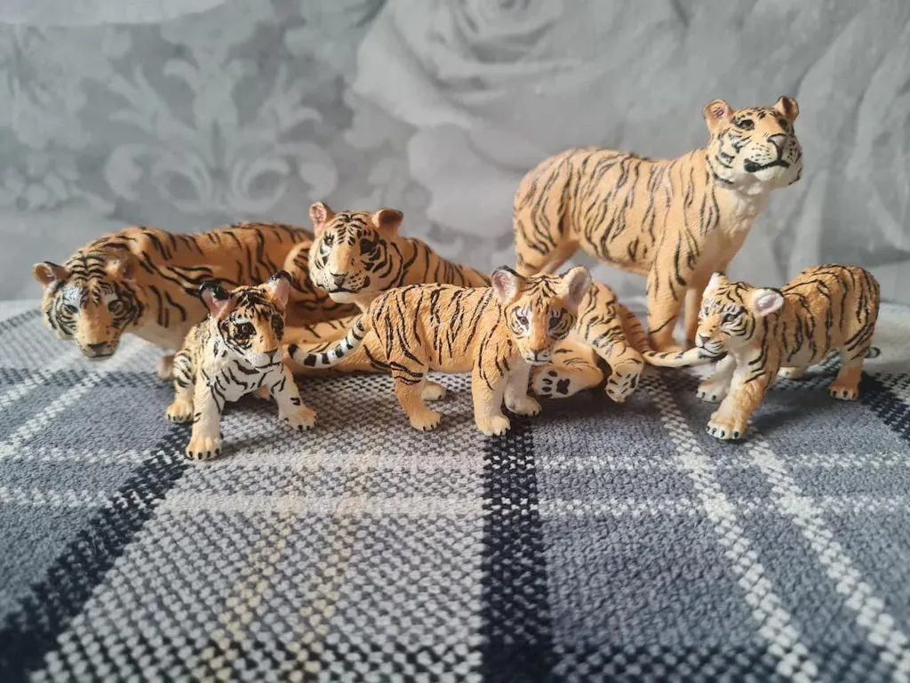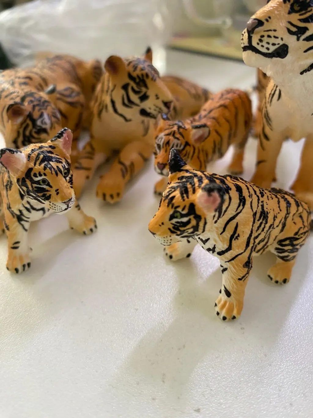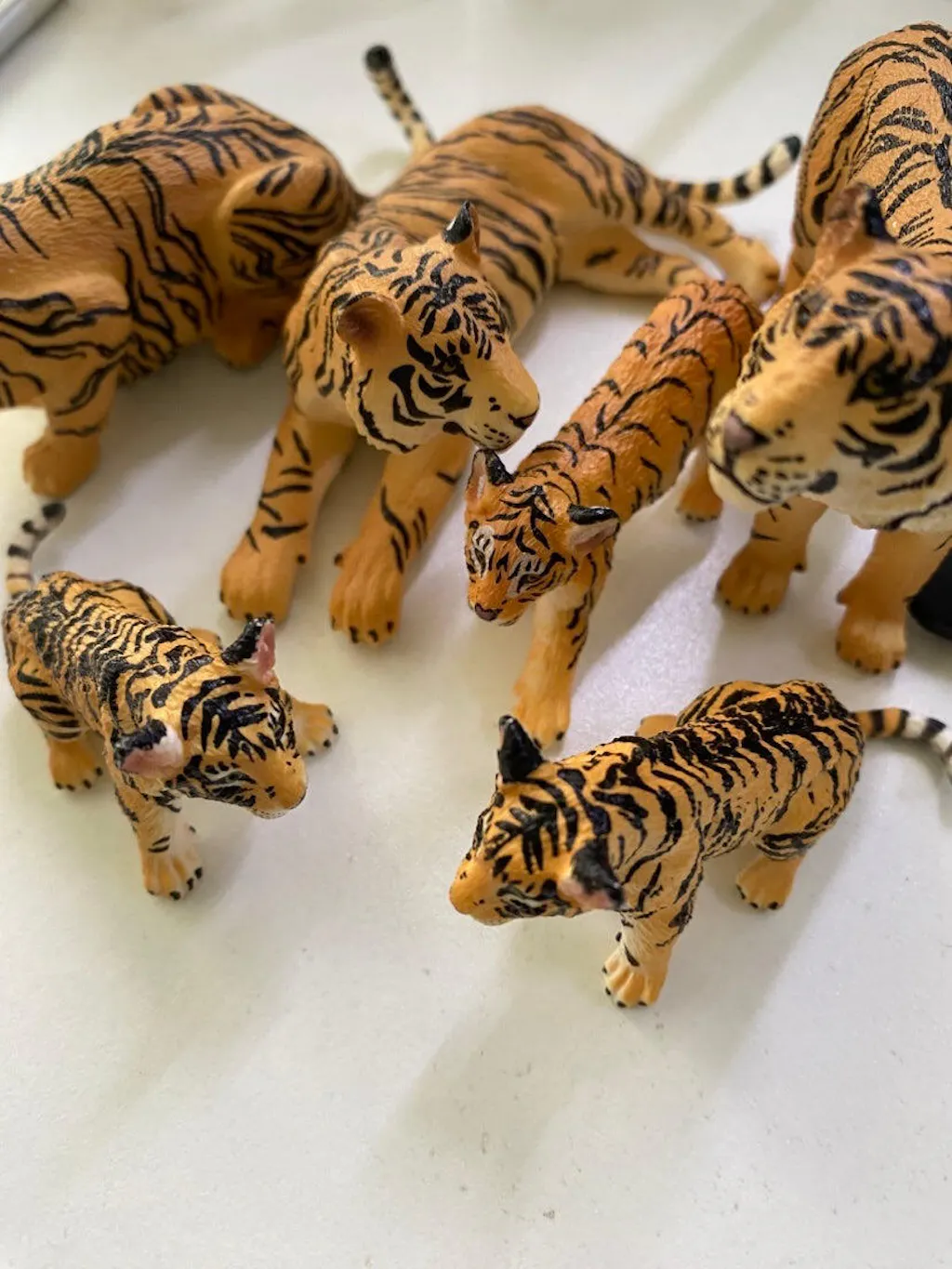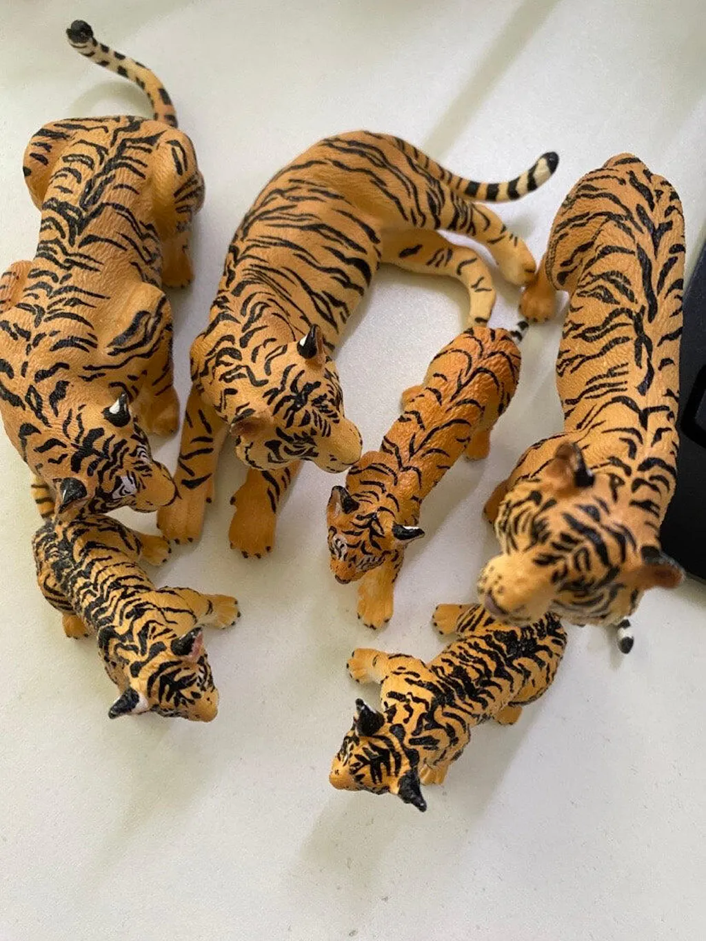 Explore the captivating world of tigers with this vibrant set of 6 lifelike tiger figurines, ideal for play and education.
