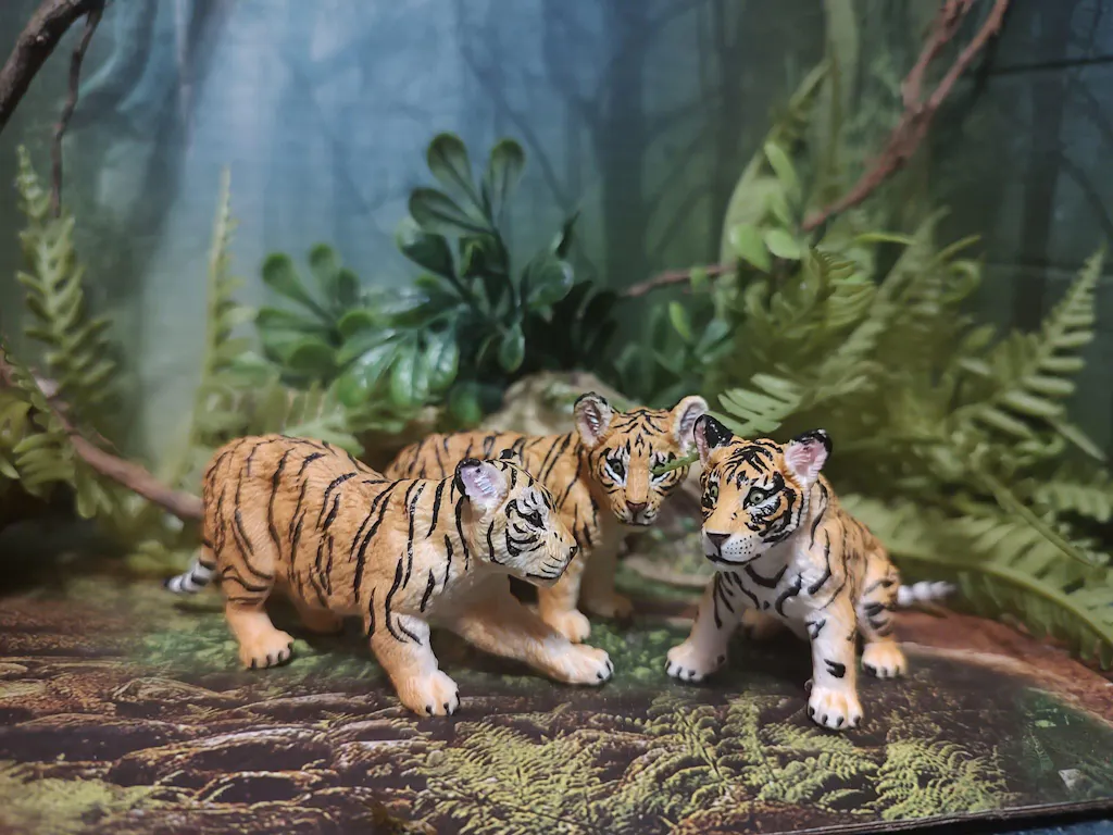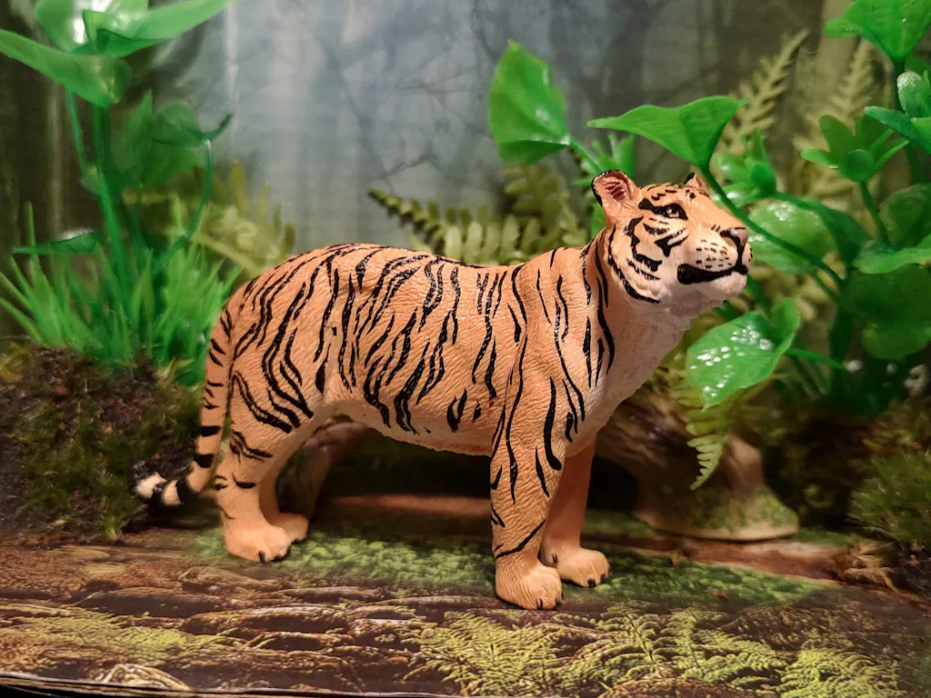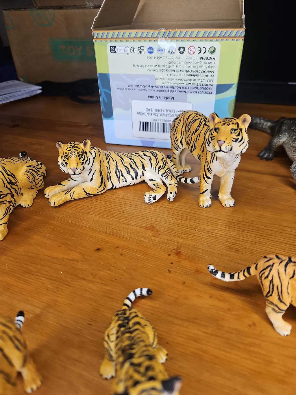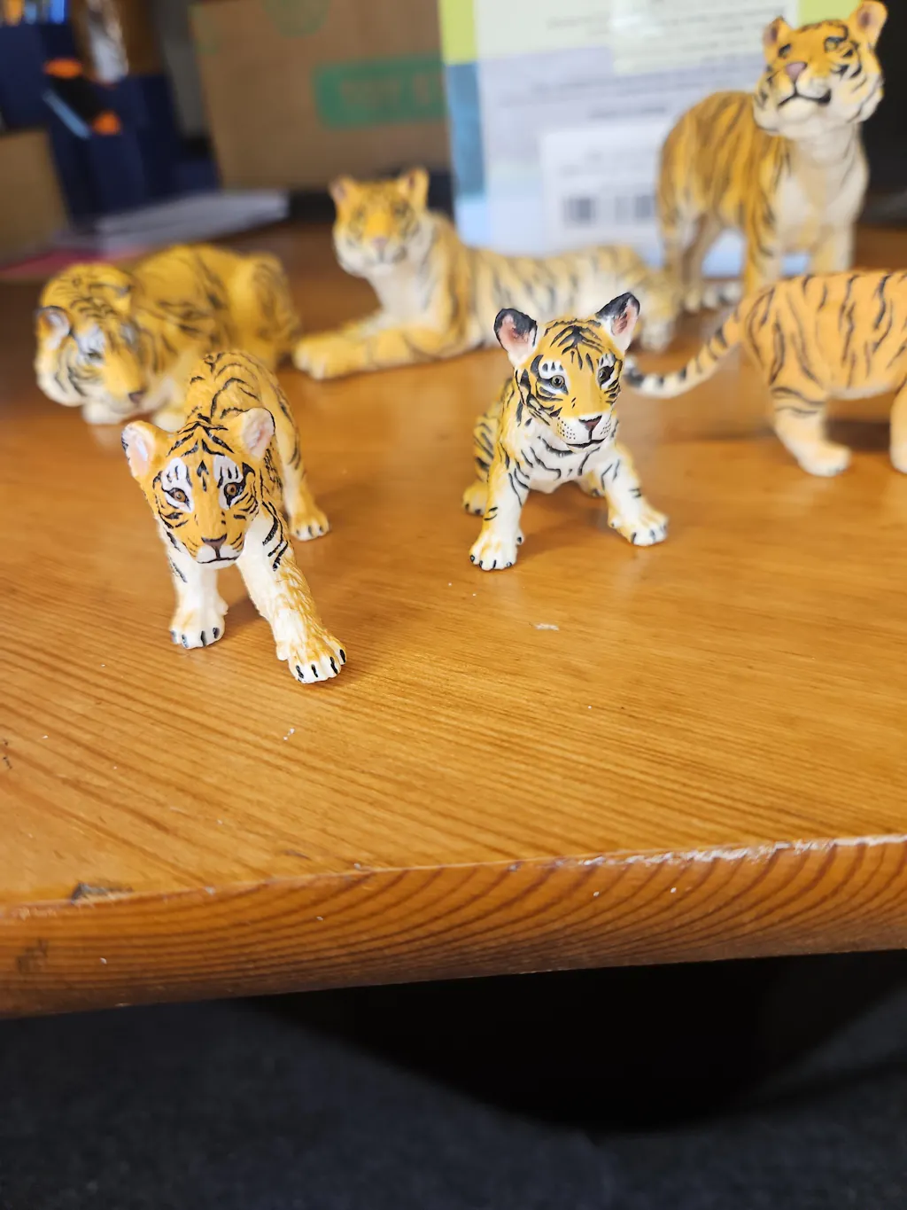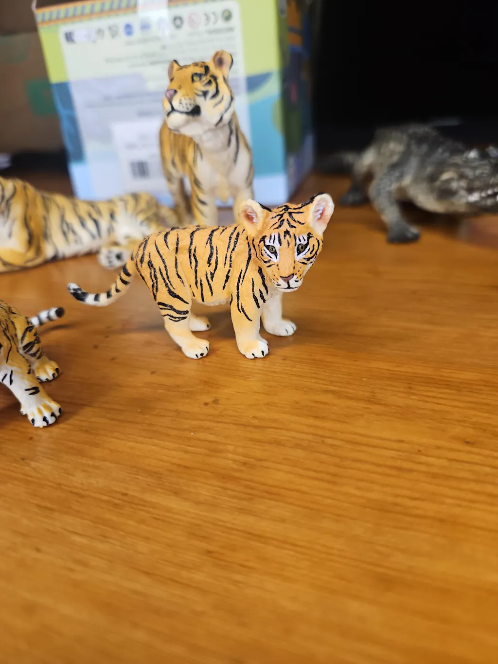 Explore the captivating world of tigers with this vibrant set of 6 lifelike tiger figurines, ideal for play and education.