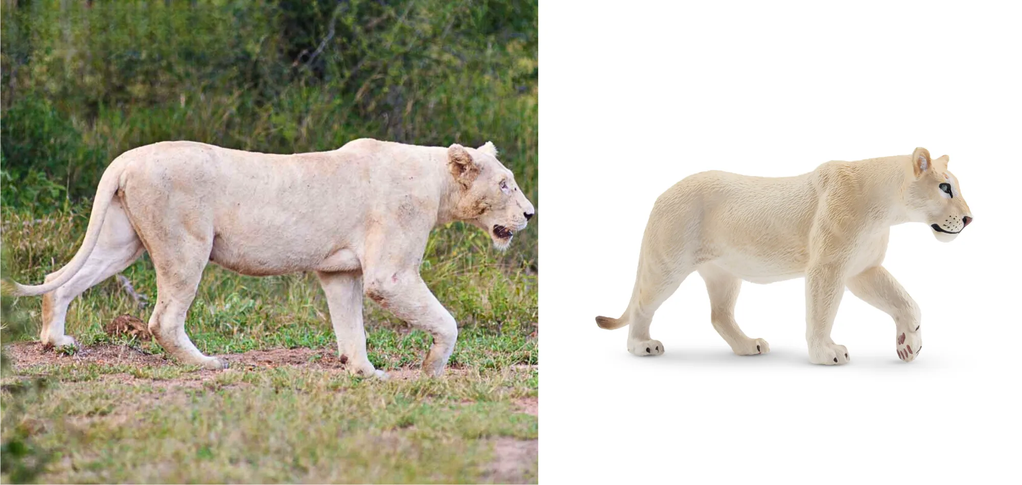 Discover our Walking White Lioness figurines: robust elegance, top-notch materials, and captivating detail await you!