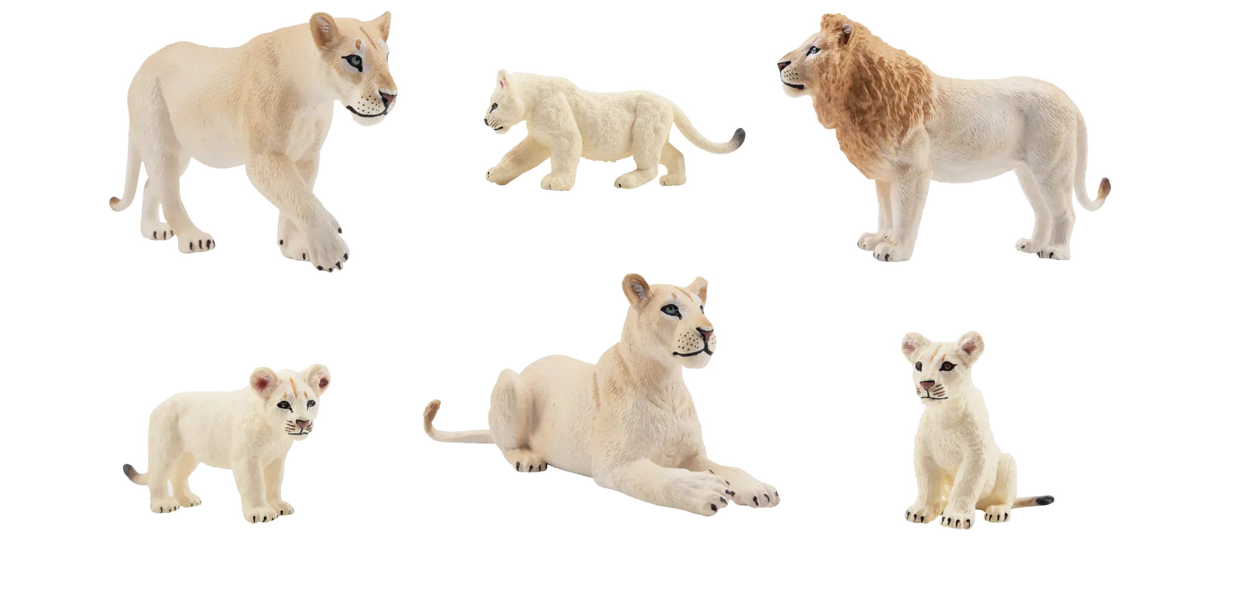 Explore the majestic world of lions with this vibrant set of 6 lifelike white lion figurines, perfect for both educational play and wildlife discovery.